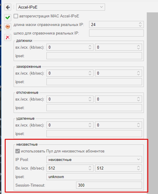 Настройки :: Системные опции :: Параметры, раздел Accel-IPoE