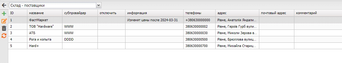 Данный раздел предназначен для работы с списком поставщиков.