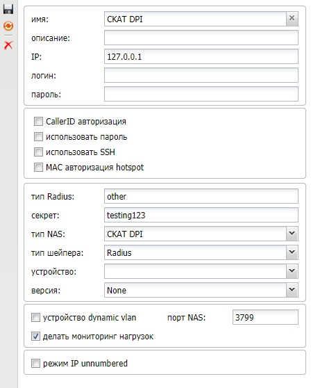 | Использовать SSH | для доступа биллинга к NAS по SSH, либо если чекбокс не стоит, то по телнет – это только для Mikrotik NAS (эту опцию лучше не использовать вообще, пользоваться только SSH) |