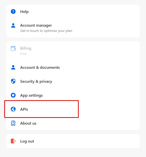 Войдите в Revolut Business portal, перейдите в раздел Settings > Business API.