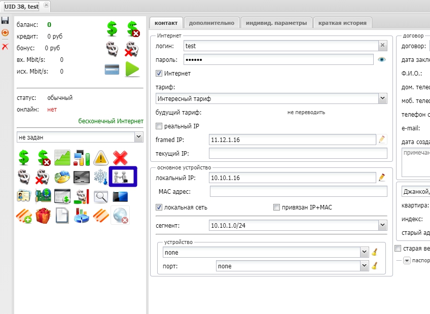 1.Перейти в учетную запись абонента