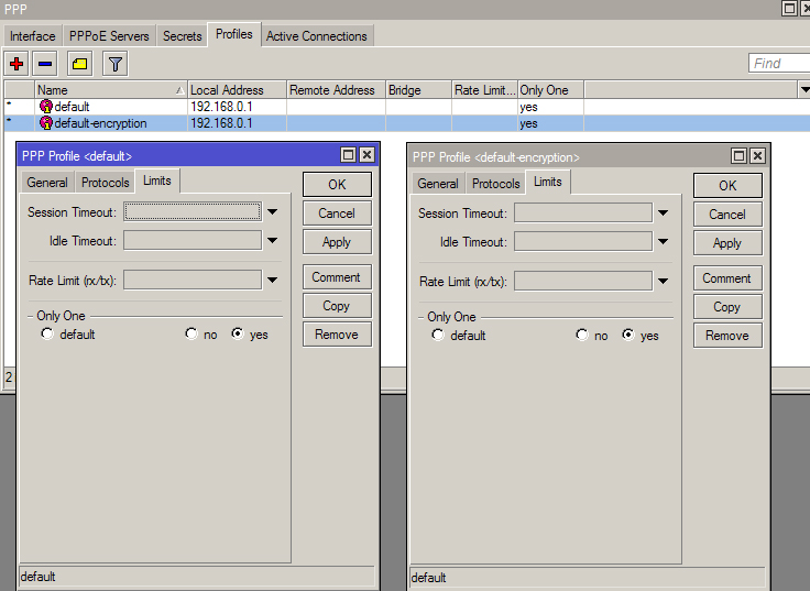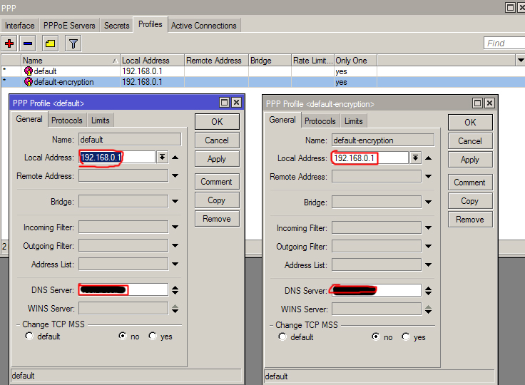 Переходим к вкладке Profiles Открываем профили "default" и "default-encryption". На вкладке General в профиле обязательно указать