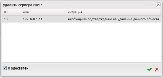 При удаление NAS будет произведена проверка не используется ли данный NAS в тарифах.