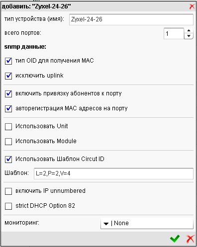 Также заполним шаблон для Option 82. Подробнее о шаблонах здесь