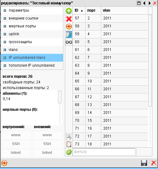 3. Перейдем во вкладку IP Unnumbered vlans и укажем vlan, в котором будут работать абоненты.