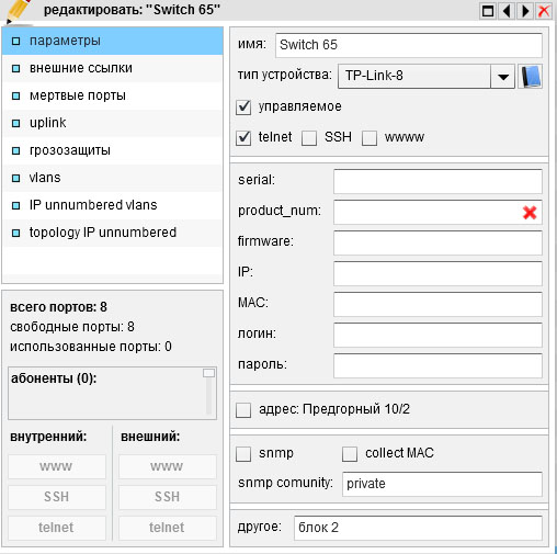 Чтобы включить режим IP Unnumbered необходимо открыть "настройки"-"справочники"-"типы устройств"