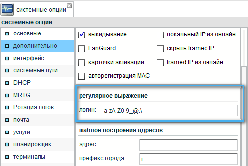 Расположение: НАСТРОЙКИ → СИСТЕМНЫЕ ОПЦИИ → ДОПОЛНИТЕЛЬНО → РЕГУЛЯРНОЕ ВЫРАЖЕНИЕ