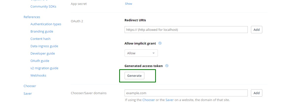 В созданном приложении нам необходимо сгенерировать "access token"