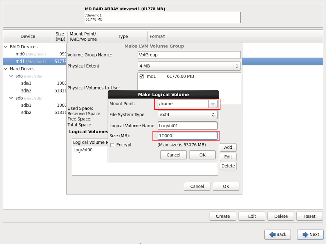 11.2.4 Собираем остальное пространство в raid. Отличие - в настройках Raid Partition каждого диска выбираем использовать оставшееся место (Fill to maximum allowable size)