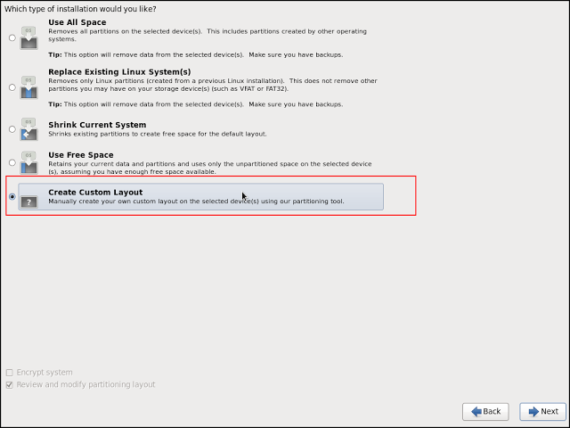 11.2 - если будем вручную разбивать диск или будем собирать raid 1 из двух дисков жмем "Create Custom Layout"