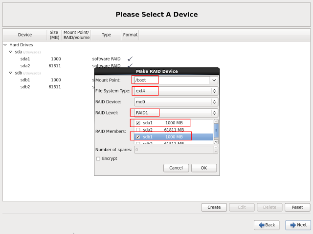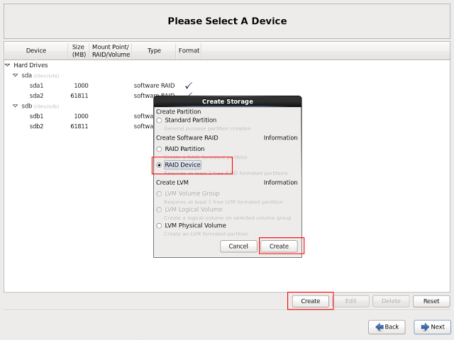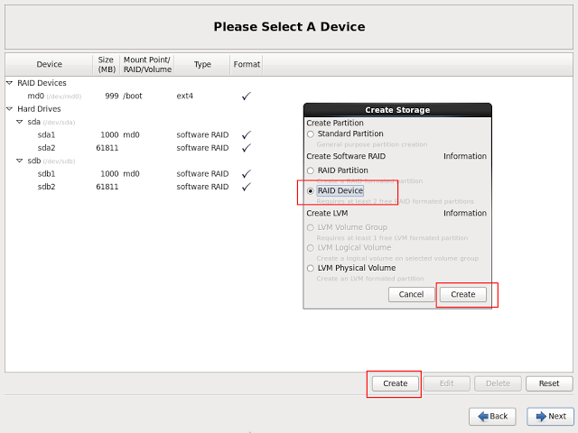 11.2.5 Собираем раздел /boot. Для этого выбираем Create - RAID Device - Create
