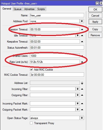 Перейдите в IP→Hotspot→User Profiles