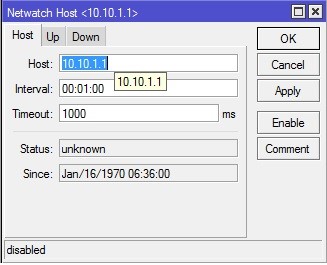 6. Теперь добавьте в Netwatch следующее: