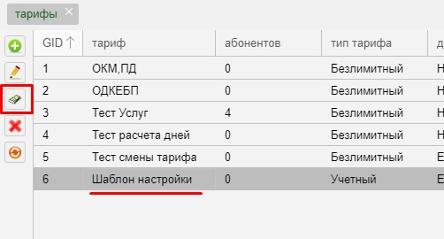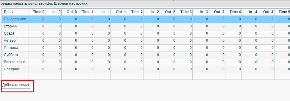 Что бы добавить лимит, необходимо в списке тарифов выбрать лимитный тариф и нажать на кнопку редактирования цен.
