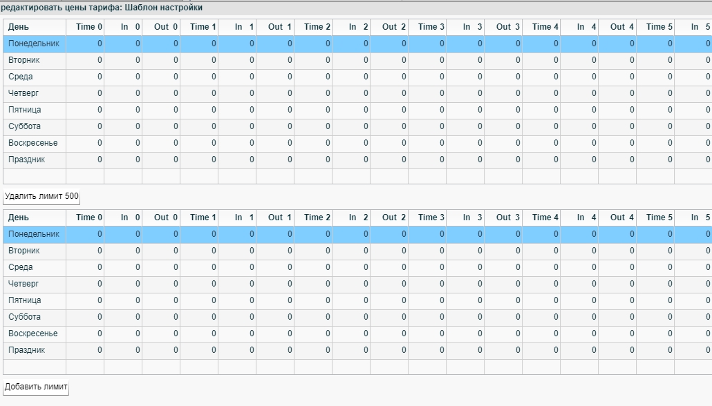 Шаблон настройки лимитного тарифа
