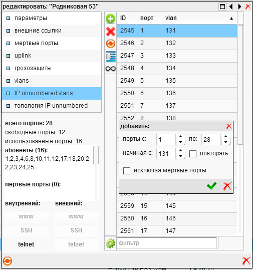 Добавить устройство, указать номер QinQ-VLAN