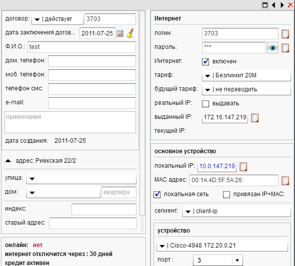 Настройки в билинге: