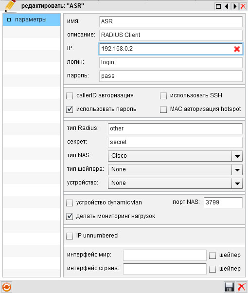 Настройка со стороны MikBiLL NAS