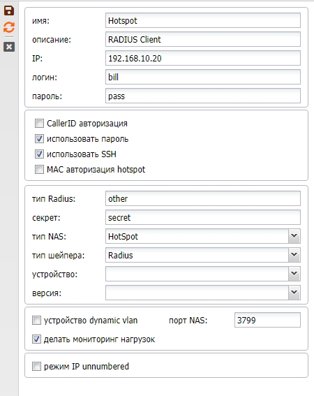 | Секрет | radius secret , используем при связке с radiusd |