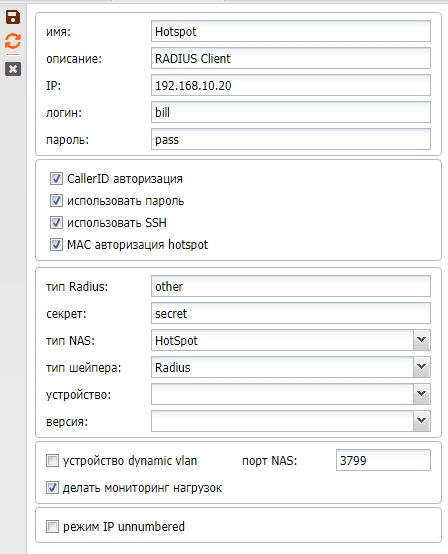 | Использовать пароль | использовать пароль или нет при авторизации по Caller-ID. Т е чтобы сделать авторизацию например для PPPoE по mac+pass, тоже для IpoE и PPTP |