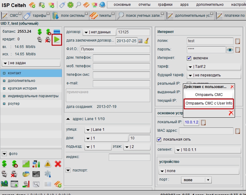 Переходим в меню Настройки/Системные опции/Параметры/Шаблоны/SMS Info