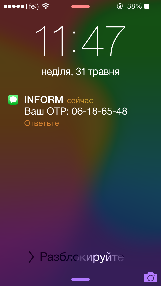 Текст сообщения - текст который придет в СМС сообщении с OTP