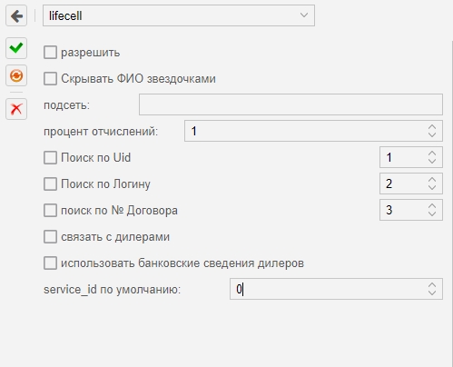 Для активации на стороне MikBiLL Вам необходимо в системных опциях Терминалы → Lifecell включить опцию "связать с дилерами" и указать "дилера по умолчанию".
