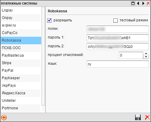 - Генерируем пароли и заносим их в настройки платежной системы биллинга MikBill в соотвествующие поля.