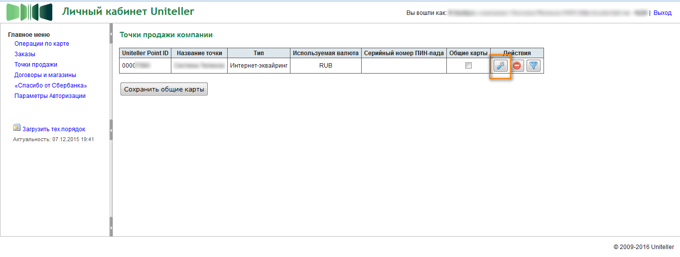 - Переходим в меню "Точки продажи " и нажимаем кнопку "редактировать" https://lk.uniteller.ru/#/upoints/filter