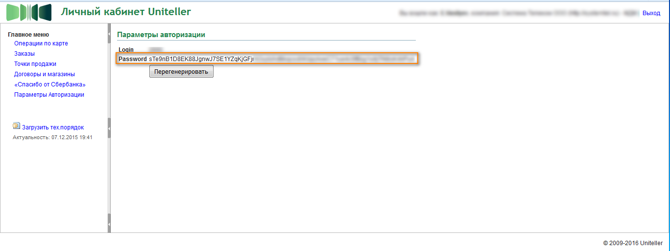 - Переходим в меню "Параметры авторизации". Нажимаем кнопку "Перегенерировать" и копируем пароль. https://lk.uniteller.ru/#/authparams/