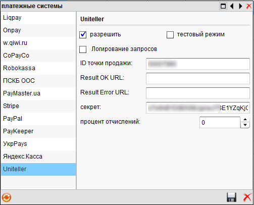 Настройка Uniteller