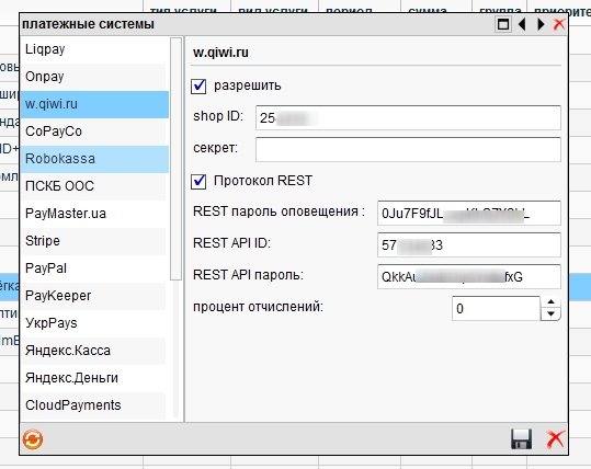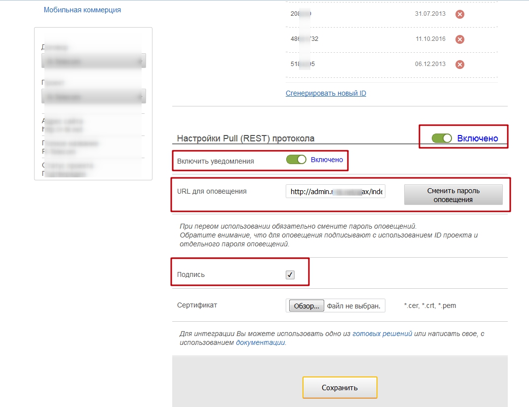 - "REST API пароль" вводим ранее сохраненный "Пароль" (при генерации нового ID) (рис. 2)