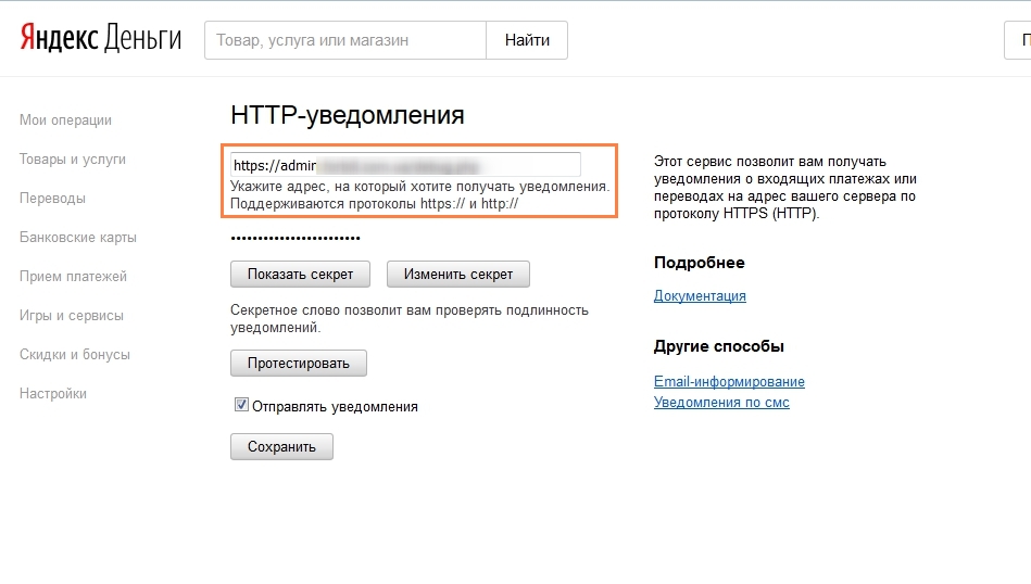- Переходим по ссылке https://money.yandex.ru/myservices/online.xml