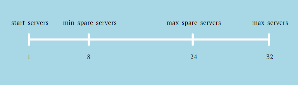 Для начала посмотрим на это изображение, на нем показано как работают параметры start_servers, max_servers, min_spare_servers, max_spare_servers
