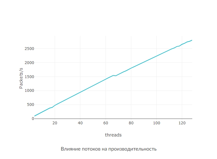 Как видно на графике удалось разогнать packets/s до 2954, на 1.000.000 было замечено падение производительности.