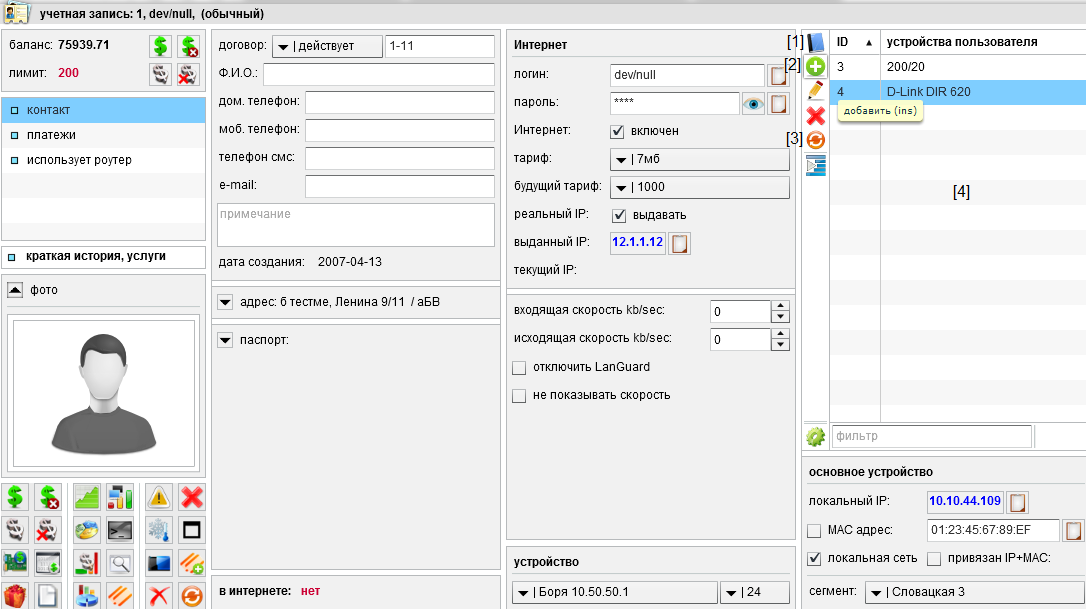 Начиная с версии 2.2.0 стал доступен справочник типов абонентских устройств и добавление самих устройств в карточке абонента.