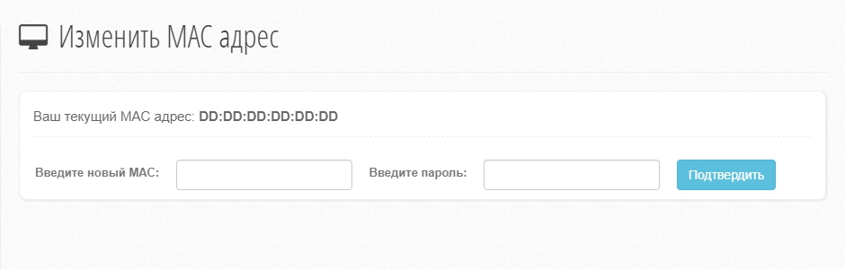 Если Вы хотите оставить возможность смены МАК в API (боте) но запретить изменять в личном кабинете, то можете отключить пункт смены МАС адреса в настройках меню.