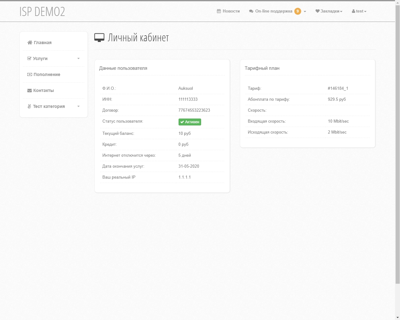 | Стартовая страница после авторизации | После авторизации абоненту будет показана указанная страница (нужно указать название страницы без /index/main/lkview/, к примеру для страницы новостей: /index/main/lkview/news название страницы будет news) |