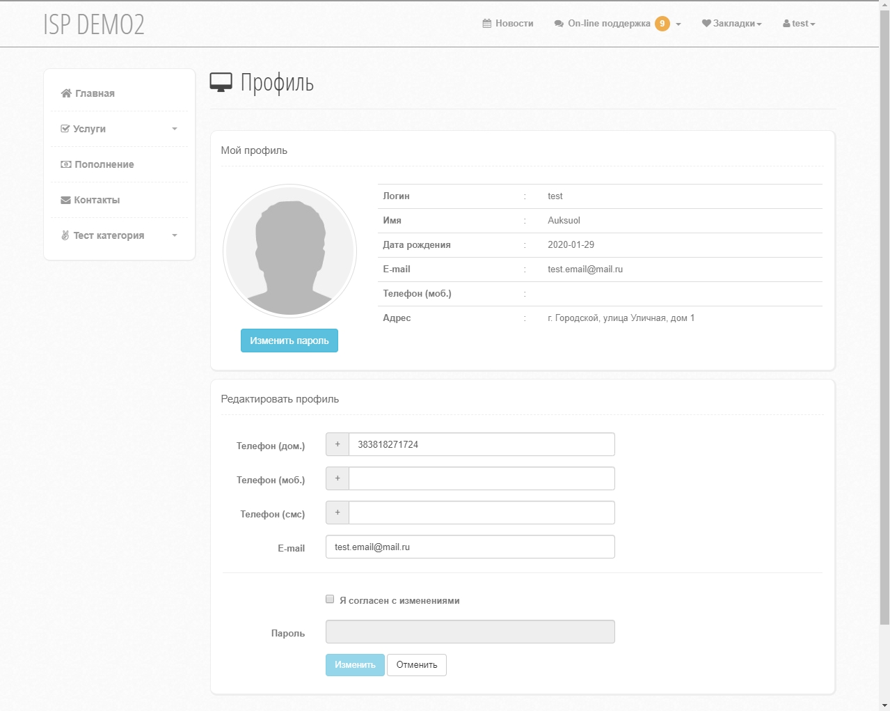 Разрешить изменять личные данные - разрешает абоненту изменить свои номера телефонов и email.