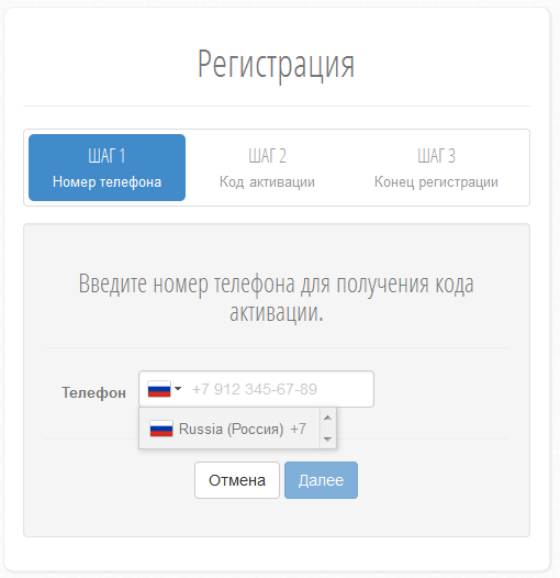 Поле ввода телефона