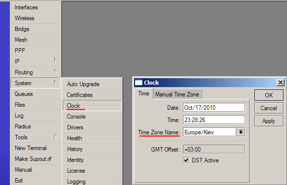 Откроем System→Clock и укажите ваш часовой пояс и текущее время.