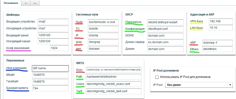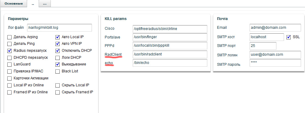 Настройка MikBill системные опции