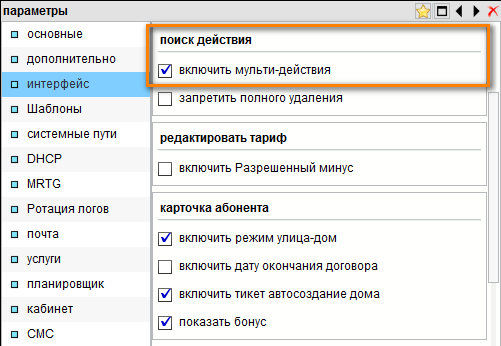 Описание: Функционал мультидействие позволяет применять к группе выбранных абонентов различные действия одновременно