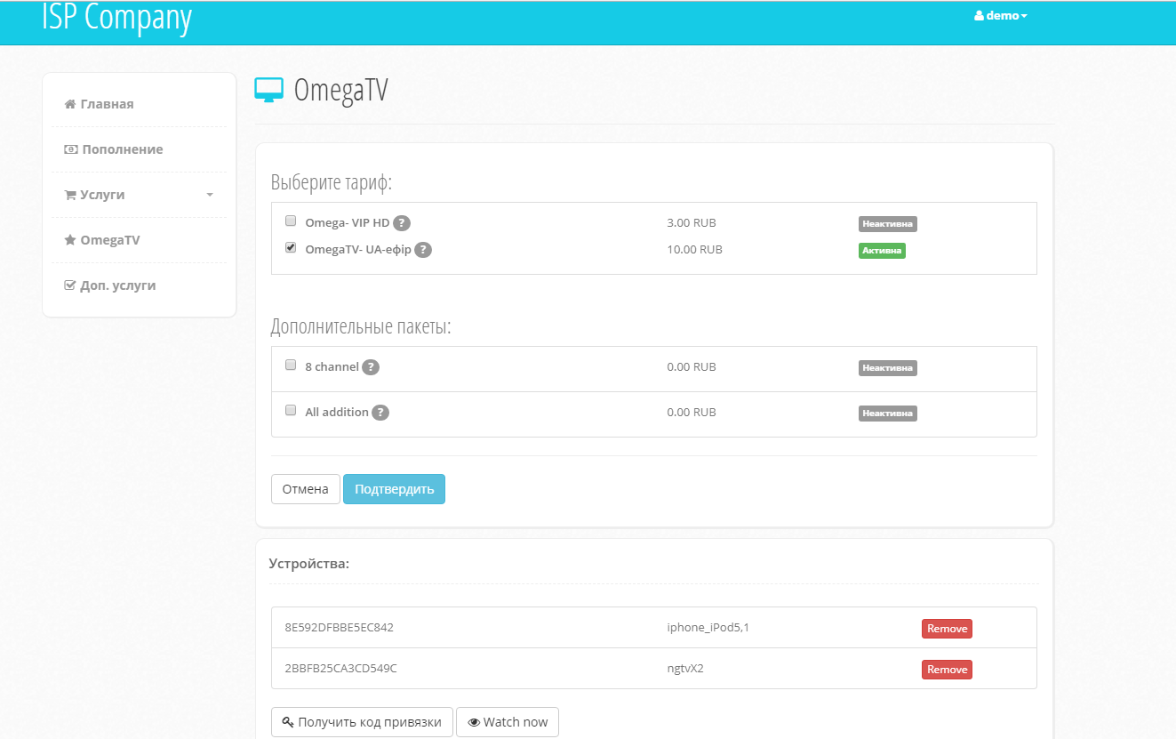 Настройка связки MikBiLL - OmegaTV