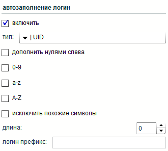 Функционал автоматической генерации логинов. Подробнее