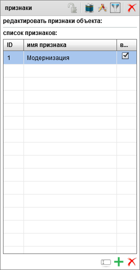 Что бы задать признак для выбранного объекта, либо выборки достаточно всего лишь поставить галочку справа имени признака. Изменения применяются и сохраняются автоматически.
