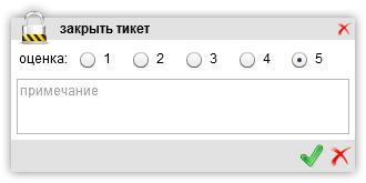 При закрытии тикета, можно поставить оценку эффективности работы исполнителей.
