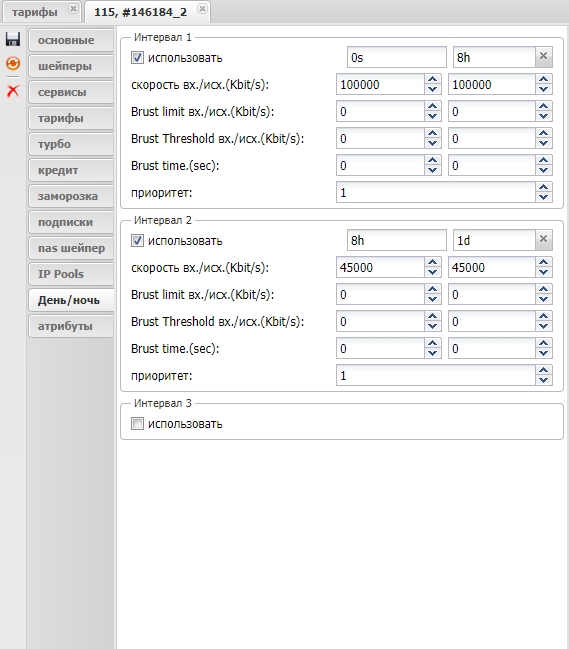 | Использовать шейперы | Разрешает использование шейперов на тарифе |