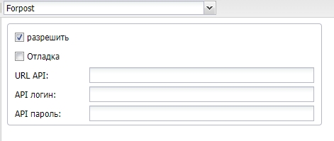 Необходимо включить и настроить работу с API в Настройки ⇒ Системные опции ⇒ Внешние интеграции в разделе Fоrроst