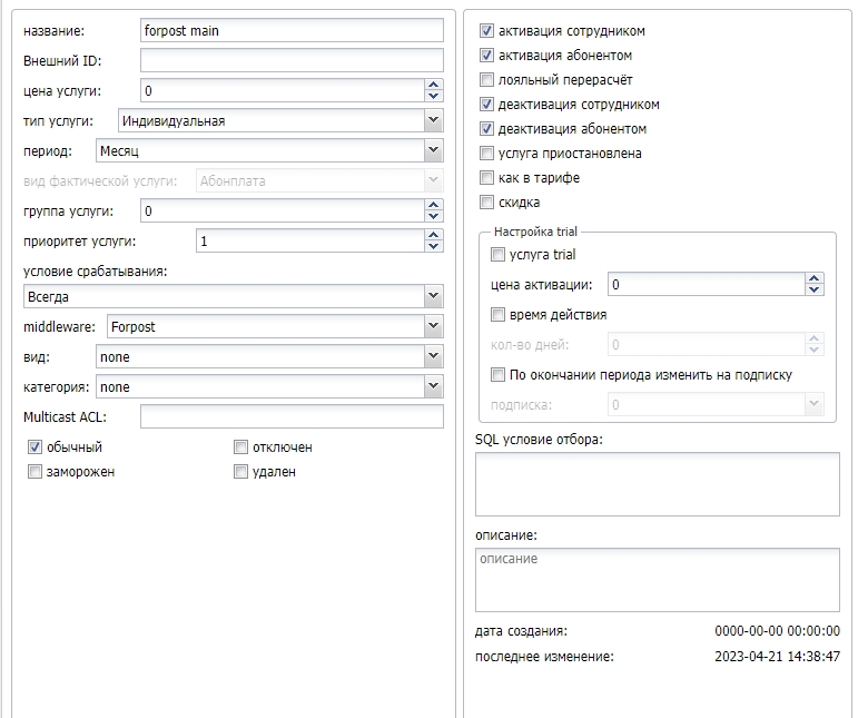 Тут необходимо указать Middleware: Fоrроst Остальные параметры настраиваются согласно общим настройкам подписок